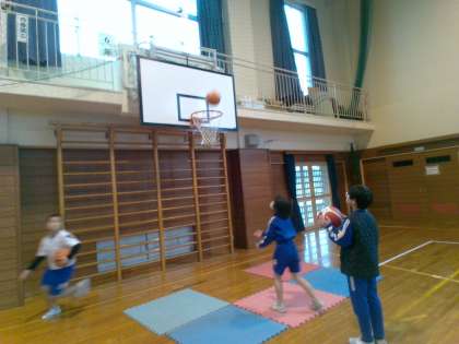4年生「アツアツ!バスケットボール」では、パスやシュートの練習をして、簡単なゲームをしました。