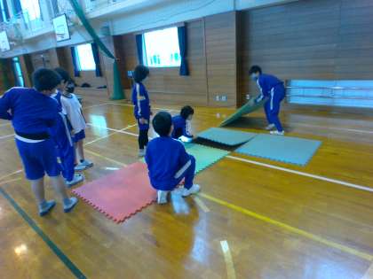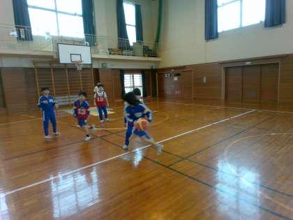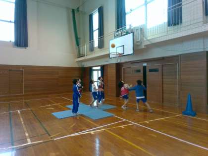4年生「アツアツ!バスケットボール」では、パスやシュートの練習をして、簡単なゲームをしました。攻めや守りのパターンを選んだり、自分たちの打ちやすいゾーンを工夫したりして取り組みました。