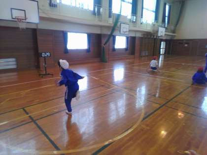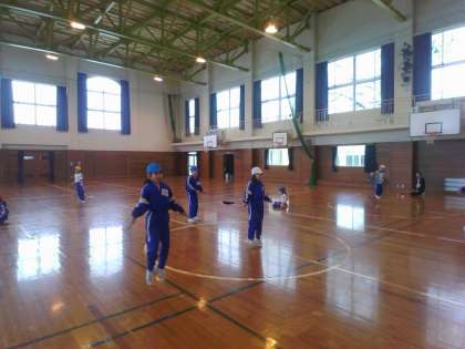 今日の体育は、なわとびをしました。1分間、前跳びやいろいろな技に挑戦しました。他にも、二人で一本の縄を跳んだり、八の字跳びをしたりしました。