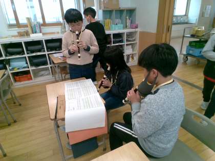 休み時間には、雨天のどんよりした気持ちを晴らすような明るい音色が響いていました。