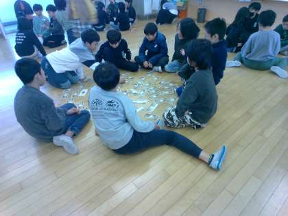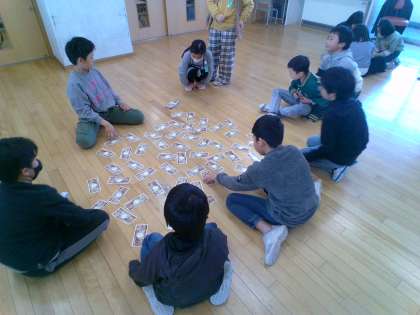 3学期で転校する友達との思い出づくりにトランプを楽しみました。出会いに感謝し、また会える日を楽しみにしています。