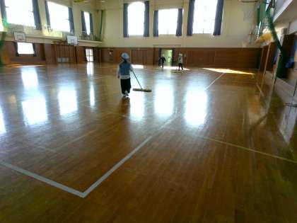 今年、5年生は教師の他に、体育館、玄関前・体育館前廊下、音楽室・生活科室が任されました。たくさんの人が通ったり使ったりする場所です。