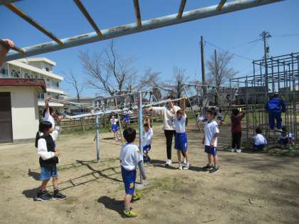 4月11日(木)1年生の様子1 公開日 2024/04/11 更新日 2024/04/11 1年生 お天気もよく、遊具のところで、ブランコやうんていなどをして遊びました。鬼ごっこをはじめた子供たちもいて、楽しそうです。