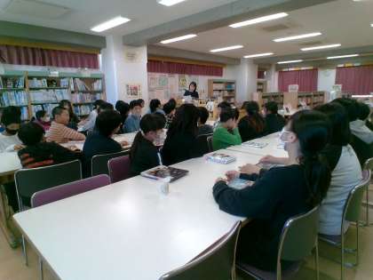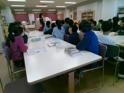 図書オリエンテーションを司書の先生にしていただきました。図書室利用の仕方についての説明を聞き、読み聞かせをしてもらいました。