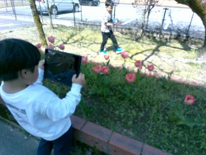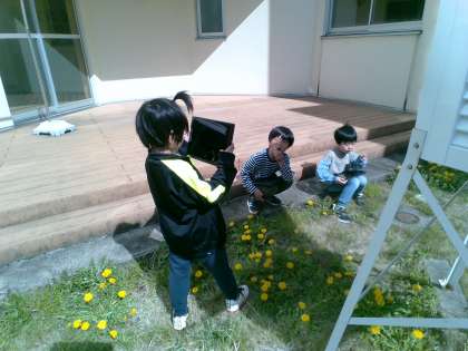 見つけた春を写真や動画で撮りました。近くから、遠くから、上から、下から、見る場所による見え方の違いも楽しんでいました。