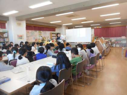4年生は5時間目の授業で図書オリエンテーションをしました。
