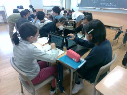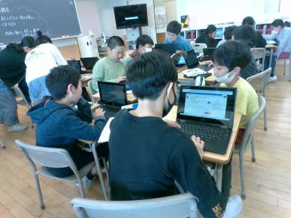 算数科「線対称な図形」では、線対称な図形の特徴を調べ、問題に挑戦しました。教科書も進化して、デジタル教材としてできます。
