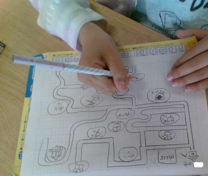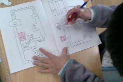地図記号を使って、理想の街を書きました。休み時間にも「地図の続きしよう!」と熱心に取り組む姿が見られました。