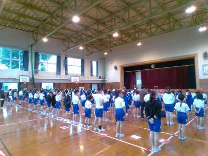 今日は、会閉会式の並びや縦割り班競技について確認しました。