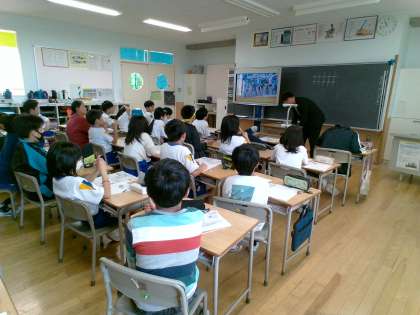 来週の田植えに向けて、ゲストティーチャーに来ていただき、米づくりについて教えていただきました。