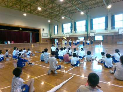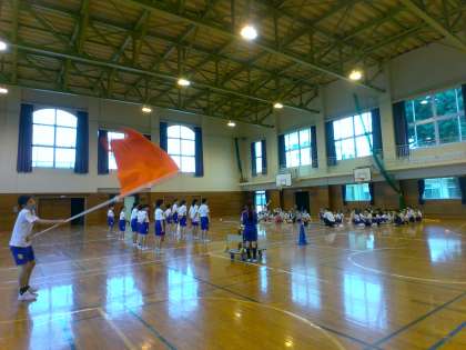 今日は運動会に向けて、応援を見合いました。それぞれの団が勝ちたいという気持ちを燃やしていました。