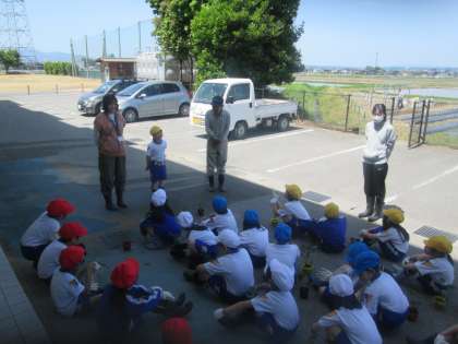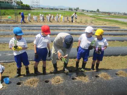 5月10日(金)、野菜の苗を植えました。野菜名人の橋本さんをお招きして、植え方や世話の仕方を教えてもらいました。子供たちは早速気になったことをたくさん質問していて、野菜への熱い思いが伝わってきました。