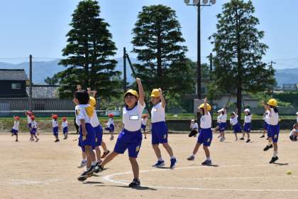 低学年競技「ダンシング玉入れ」では、楽しく踊りながら競技を行いました。