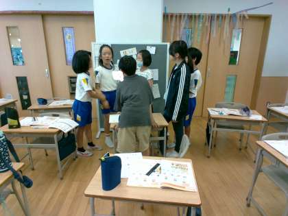 今日は、色団ごとに誕生日を質問し合い、4月生まれから順番に並ぶ誕生日チェーンをつくる学習をしました。