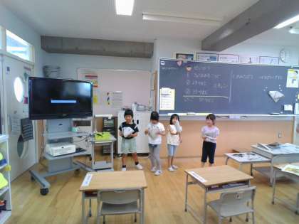 1年生は反復横跳びの練習や投げる練習を始めました。