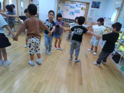 「さんぽ」の曲を歌ったり、はくをとりながら歩いたりしました。手拍子や腕をふりながら、楽しく活動できました。