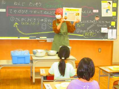給食の時間に学校栄養職員の先生から、給食の食器の並べ方、茶碗の持ち方、食事中の姿勢について、クイズ形式で教えていただきました。マナーマナーが分かりました。体のためにも、気をつけて食べたいです。