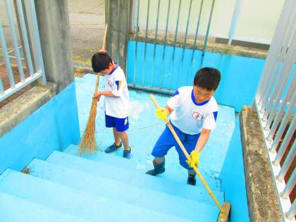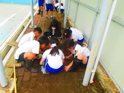 草やこけ、泥などをほうきやブラシ等を使って丁寧に取り除きました。