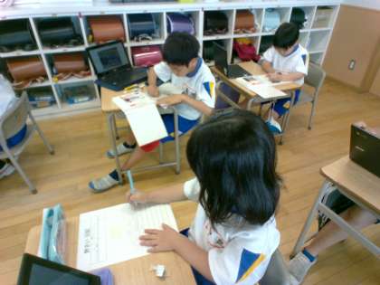 国語の「かんさつ名人」で学習したことをいかして、比喩表現を用いて日記を書くことができた子供もいました。