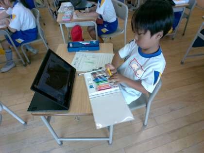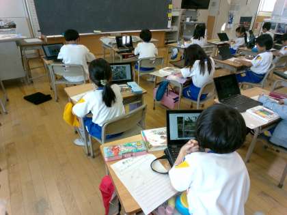 畑の野菜は、何日か雨が降った後でぐんと伸びて大きくなってきました。子供たちは、自分のクロムブックで写真を撮ってから教室でやさい日記を書きました。