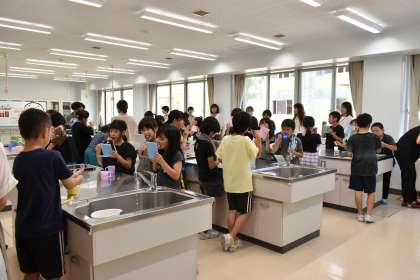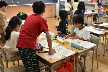 学習中、ペアで相談したり、グループで話し合ったり、時には保護者の協力を得たりしながら取り組んでいました。