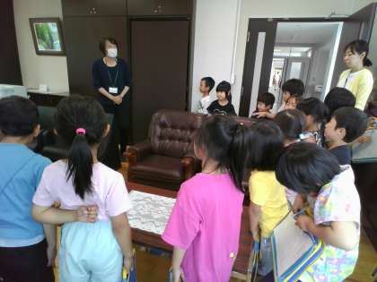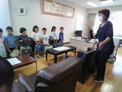今日は、校長室へ行き、校長先生のお仕事を聞いたり、ソファに座らしてもらったりしました。初めて校長室に入り、わくわくどきどきした一年生でした。