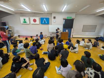 ジェスチャーゲームでは、進行を5年生、解答を4年生ががんばっていました。