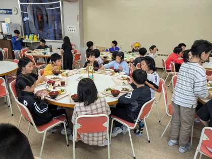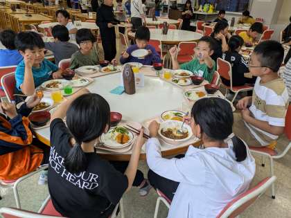 昼食は、カレーライスです。呉羽青少年自然の家での最後の食事です。おいしくいただきました。