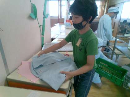 家庭科「夏をすずしく快適に」で学習した正しい服の畳み方を実践しています。いいね!