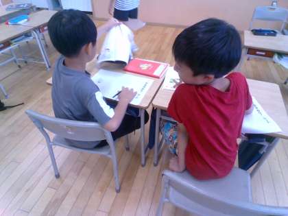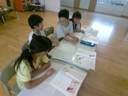 「まいごのかぎ」の学習をしています。まいごのかぎでは、主人公の身の回りで数々の不思議な出来事が起こります。そんな不思議な物語に対して、「なんでやねん! シート」を用いて物語に「つっこみ」を入れていくことで、物語への理解、自分の考えを深めています。