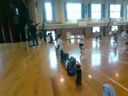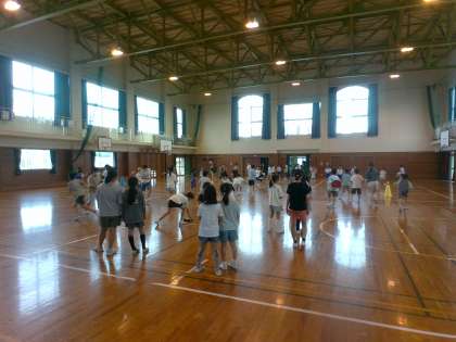 今日は、赤団と白団でジャンボリードッジビーをしました。