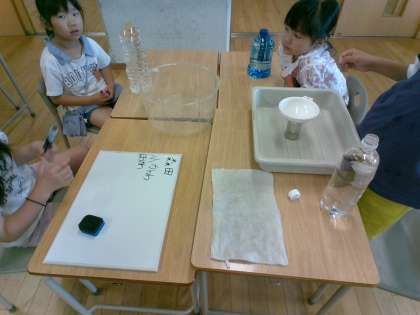 前時で学習したdLますを使って、容器に入った水のかさを測りました。測定している中で、dLますでいっぱいにならない、はしたの量をどうやって表したらよいかを考えました。