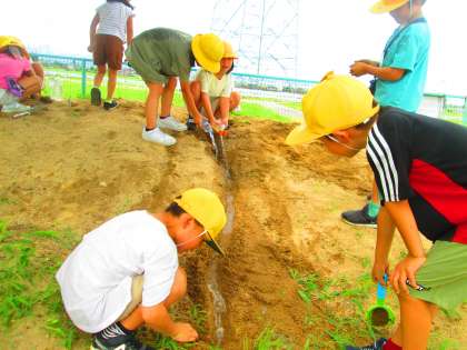 図工の学習で、砂で泥ダンゴやトンネルなどをつくって遊びました。