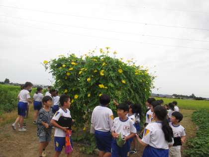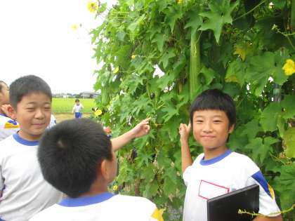 4年生は理科の学習でヘチマの様子を観察しに行きました。