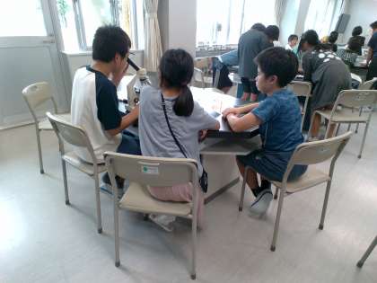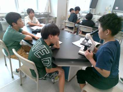 初めて顕微鏡を使うので、使い方をみんなで確認しました。