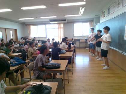 明日のチャレンジ陸上記録会に向けて、セルフ走行会をしました。クラスの応援団長たちがエールを送りました。