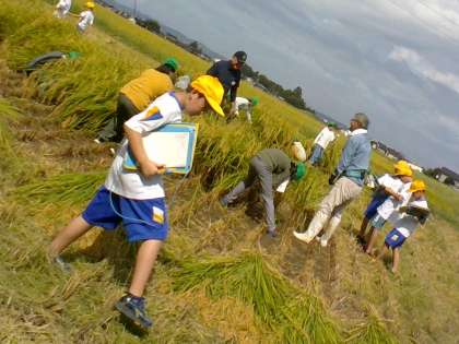 ミニ社会見学 3年生 社会科 公開日 2024/09/17 更新日 2024/09/17 3年生 5年生の稲刈りを見学しました。さらに、来校していた、農家、新聞記者、TV局の方々に積極的にインタビューする姿が見られていいね!