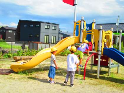 公園では、ブランコやすべり台などの遊具で、友達と楽しく遊びました。ゆったりと過ごしました。