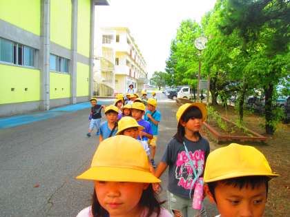 道すがら、稲刈りを終えた田んぼがあったり、トンボやチョウが跳んでいたりと、秋の訪れを感じる風景が、たくさん見られちょうどちょうど、学校の田んぼでも5年生さんの稲刈りが始まったところでした。