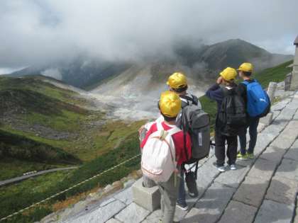 雲の上「室堂」で散策をしました。硫黄のにおいを感じたり、おいしい水を味わったりしました。