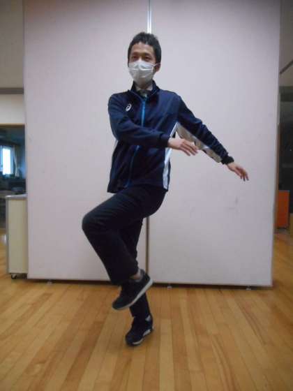 しゃしん11(間奏)・・・手をななめにふりおおろす、足はななめにふりあげる。