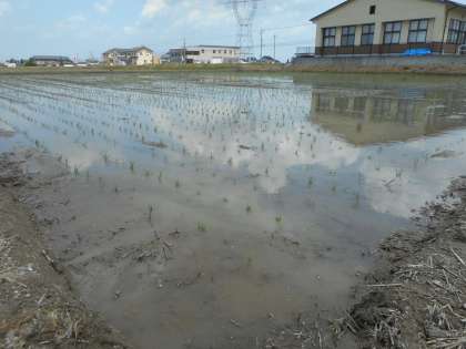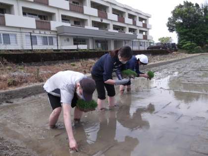 5月13日(水)、地域の方のご協力のもと、田植えを行いました。教職員も手でイネを植えました。学校が再開したら、みんなでお世話や観察をしましょう。