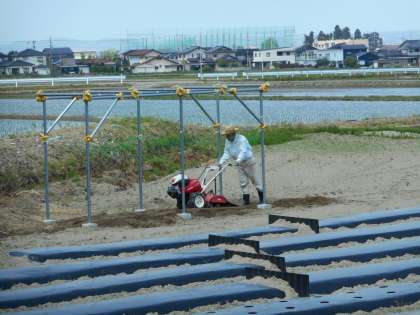 また、今日はいつも学校の畑のために力を注いでくださっている地域の橋本さんが、ヘチマの苗を植えるところを耕し、マルチをかけてくださりました。感謝の気持ちでいっぱいです。