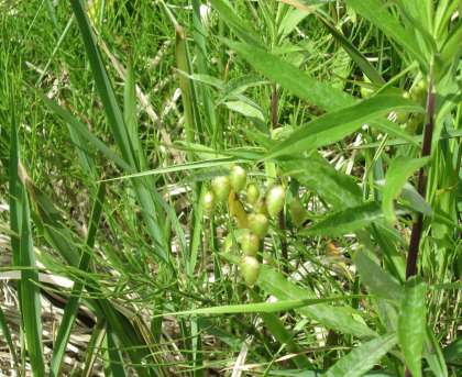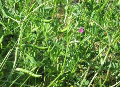 左側は、小さな紫色の花にエンドウマメのような種?を付けていました。