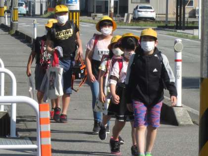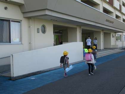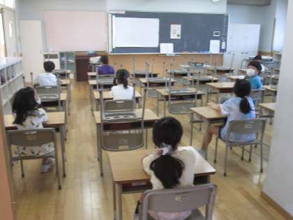 27日(水)は、日差しの眩しい朝です。今日は、Aグループにとって2回目の午前登校です。玄関で「密」にならないように、登校してきた班から校舎に入るようにしています。教室に入ったら手洗いを済ませ、授業のスタートを待っています。