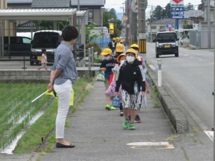 6月1日(月)、学校再開の朝を迎えました。交通指導員の方、PTAの方も、子供たちの登校を見守ってくださいました。分散登校で半分の友達とは顔を合わせていましたが、全員が揃うのは50日ぶりです。38人の6年生は、今日から音楽室・生活科室で学校生活です。