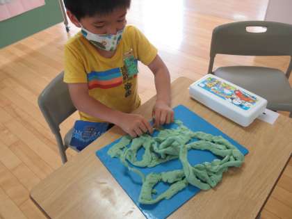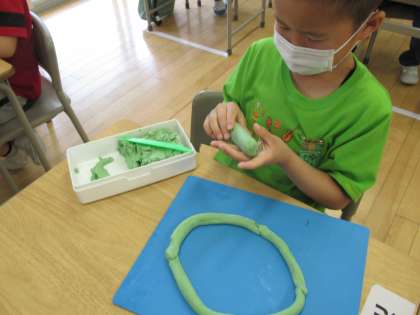 6月4日(木)、図工で「ひもひもねんど」の学習をしました。粘土をひも状に伸ばして形を作りました。想像を広げながら活動することができましたね。