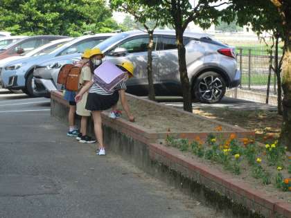 5日(金)の朝、5年生が学校田の水の管理、3年生が理科で植えたひまわり等への水やりを行っていました。金曜日の朝は、生活表の振り返りです。本日配布する保護者向け文書に書きましたが、お子さんへの励ましの言葉をお願いします。