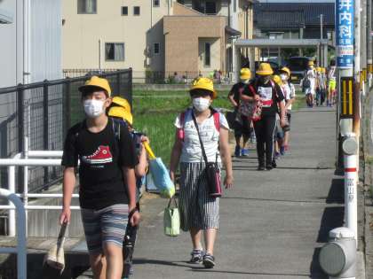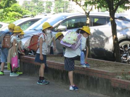 8日(月)も、暑くなりそうな朝です。学校に着くなり、「暑い!のどかわいた」という子供が数人いました。先日からエアコンの試運転を始めました。また、感染症対策で多目的ホールにかかっている子供もいるので、扇風機で風を送るようにしています。3年生が「芽が出ている」と花壇に集まっていました。「種を植えた」という自覚、「芽が出たかな?」という好奇心、学びにとって大切な感情です。