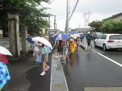 ※雨になると、自動車による送迎が多くなります。子供たちの中には、「歩いて登校する」ことを生活表の目当てにしている子もいます。お子さんの成長、地域のつながりの観点からも、特別な事情がある場合を除いて集団登校へのご理解、ご協力をお願いします。